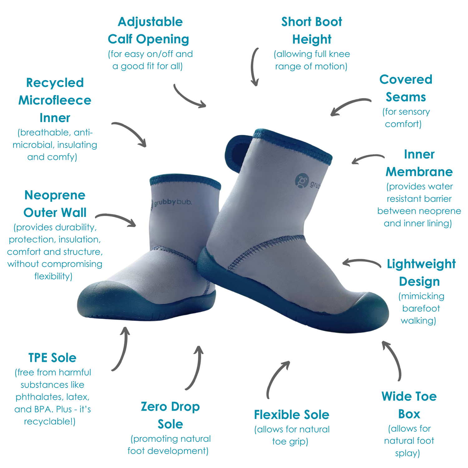 We included all the features a good barefoot style shoe should have, then improved on it by adding a water repellant membrane, and some cosy, insulating fleece.