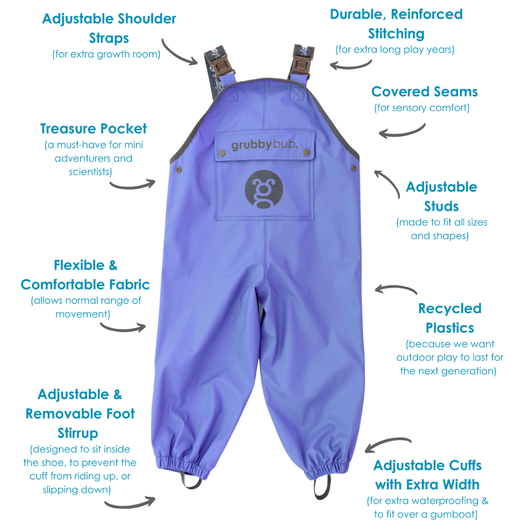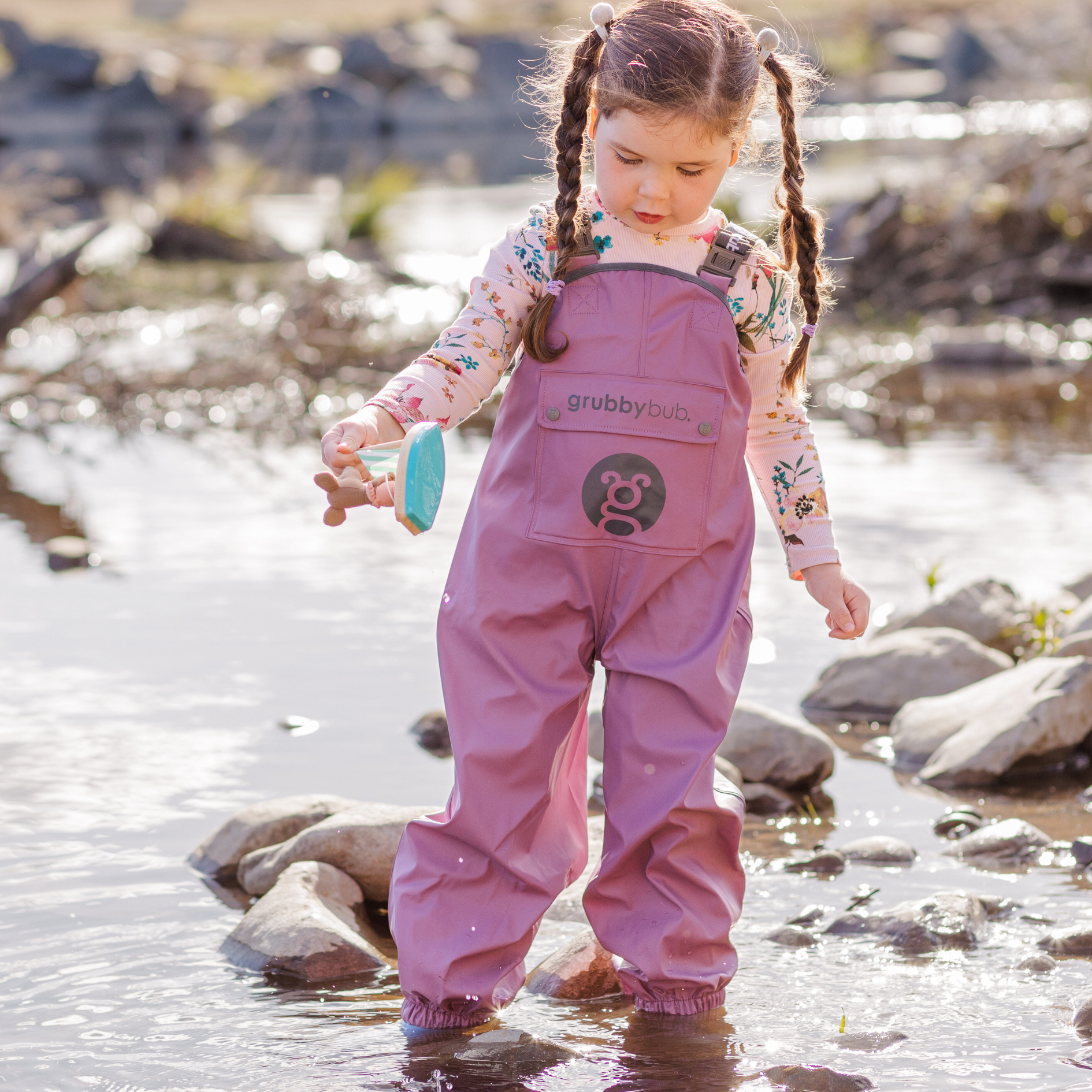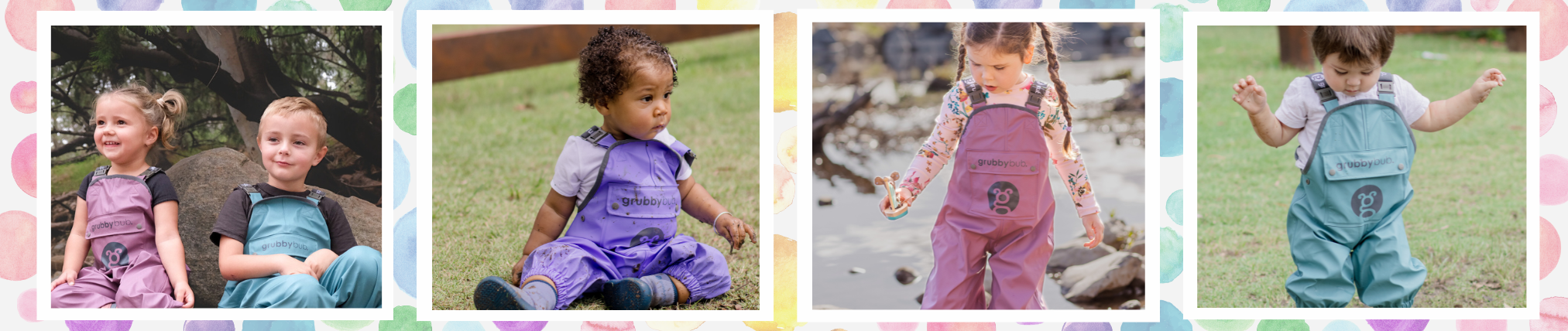 Our Grubberalls (Coveralls, or Grubby Overalls, get it?) are made for play in Australian weather. Specifically designed for the long, cool days of spring and autumn, these overalls will keep them dry and cosy, but not overheated. Super soft, breathable and flexible to move with their bodies, mini adventurers will be comfortable all day long. They will adore the treasure pocket we built in, too!